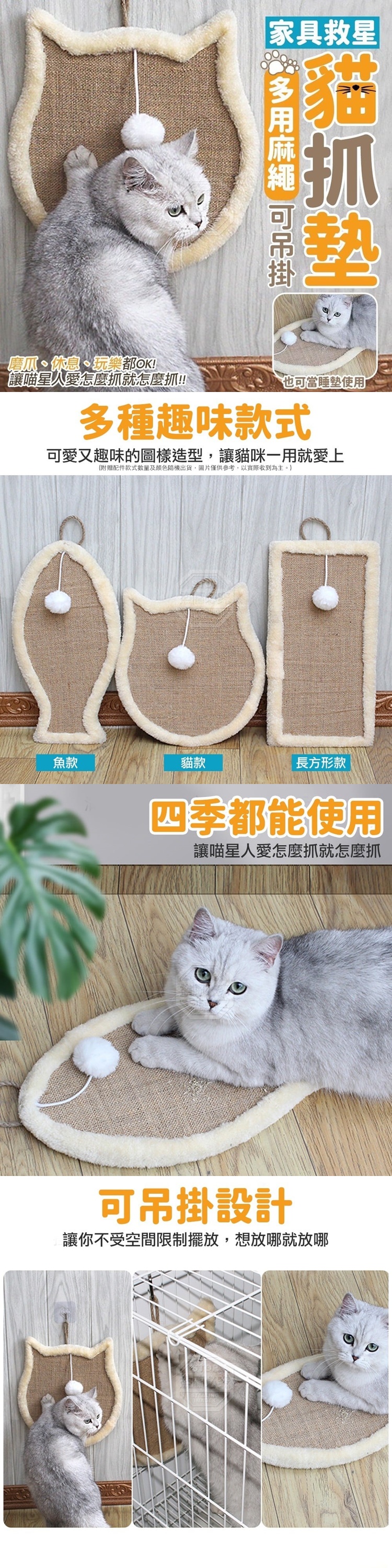 不只能磨爪、掛球設計也能逗弄小貓