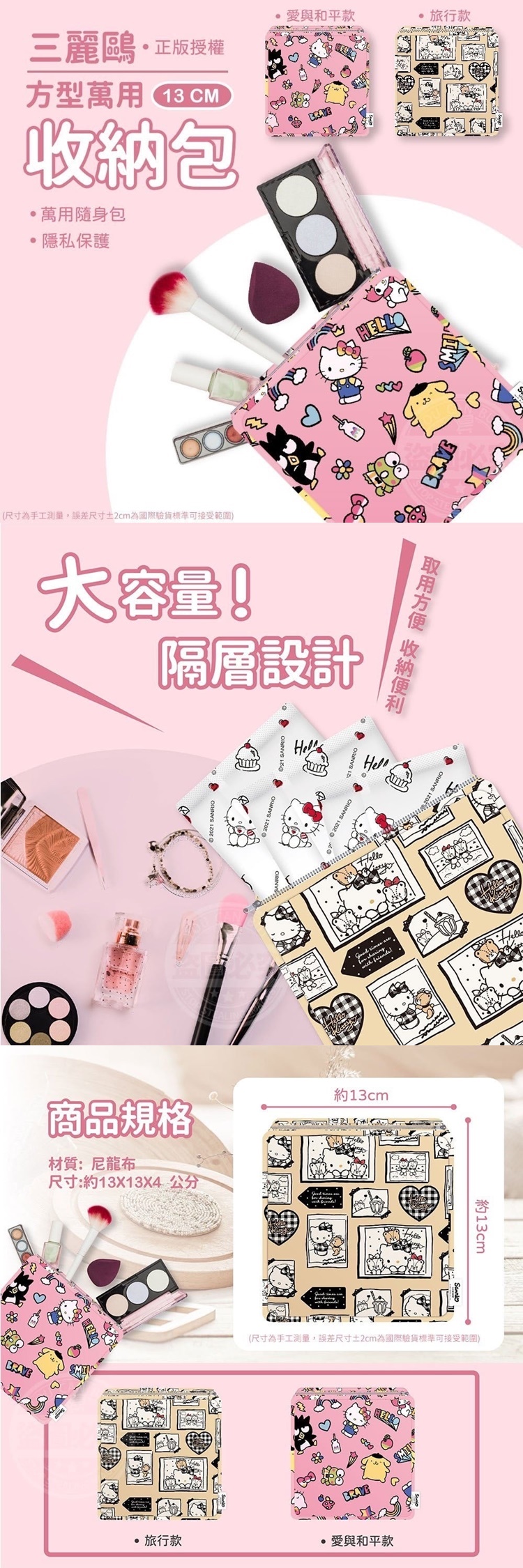 三麗鷗正版授權方形萬用收納包/旅行款(遇缺隨機)