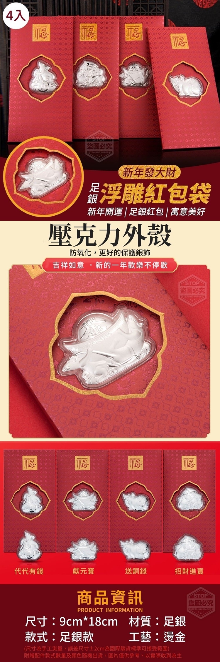 四款創意的足銀浮雕紅包袋