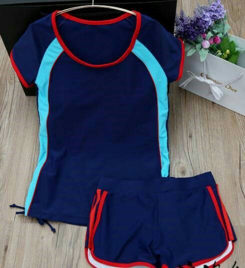 兩件式短袖遮肚顯瘦泳裝/隨機-3XL