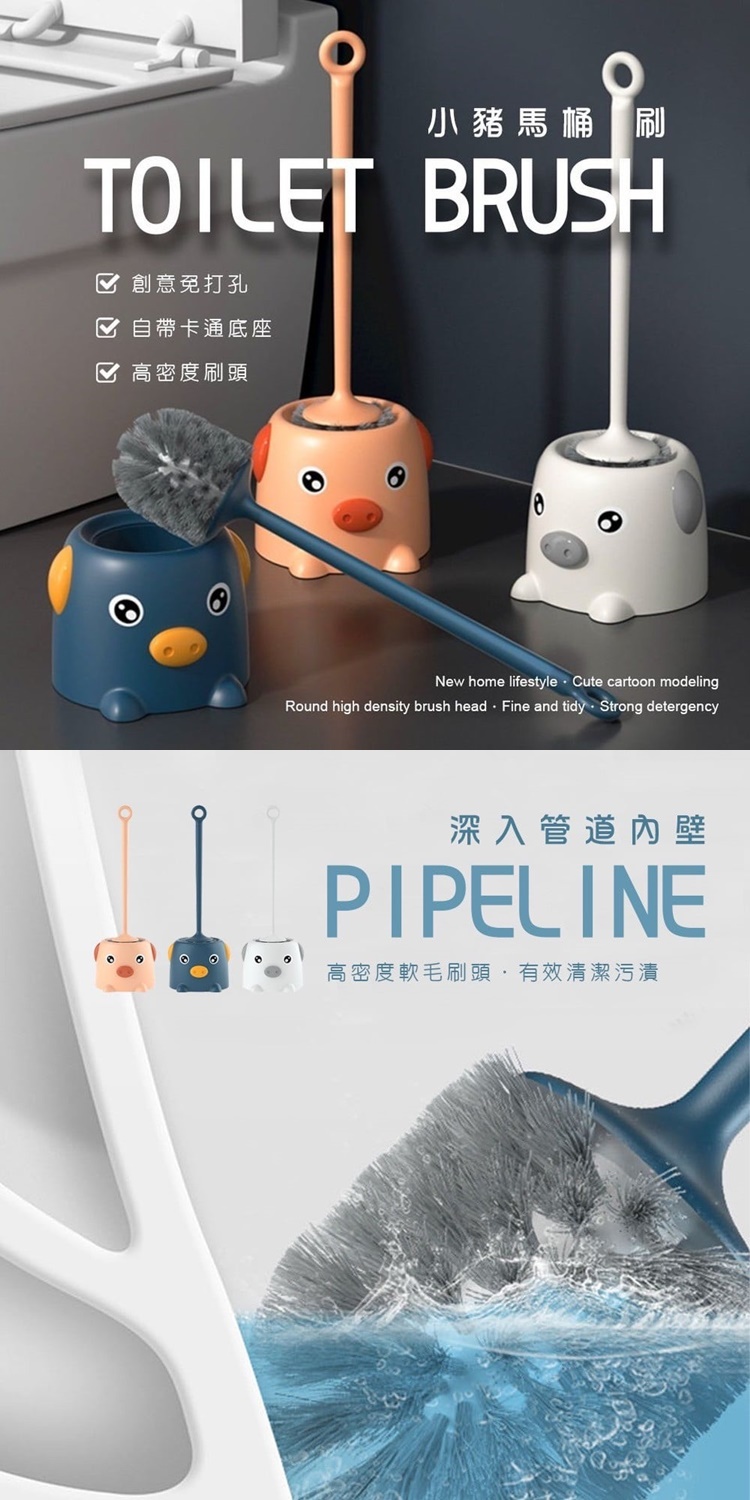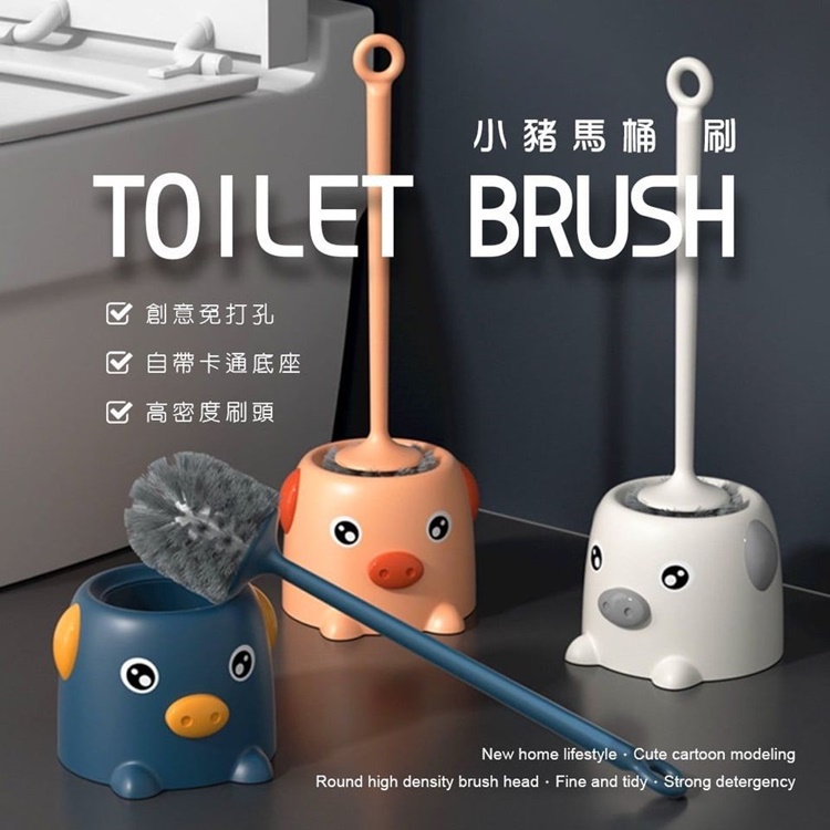 萌萌小豬馬桶刷來囉~~~ 可愛外型高品質好物 創意卡通外型設計超Q 家長把柄還有卡通底座 360度圓形高密度刷頭 無死角韌性密實去汙力超強 毛料柔軟堅韌不傷馬桶表面 加長把柄清潔更省力 柄尾設計可懸吊不占空間 尺寸:50*14.3cm(含底座) 顏色:藍 / 粉 / 灰 (隨機可許願) 材質:PP材質