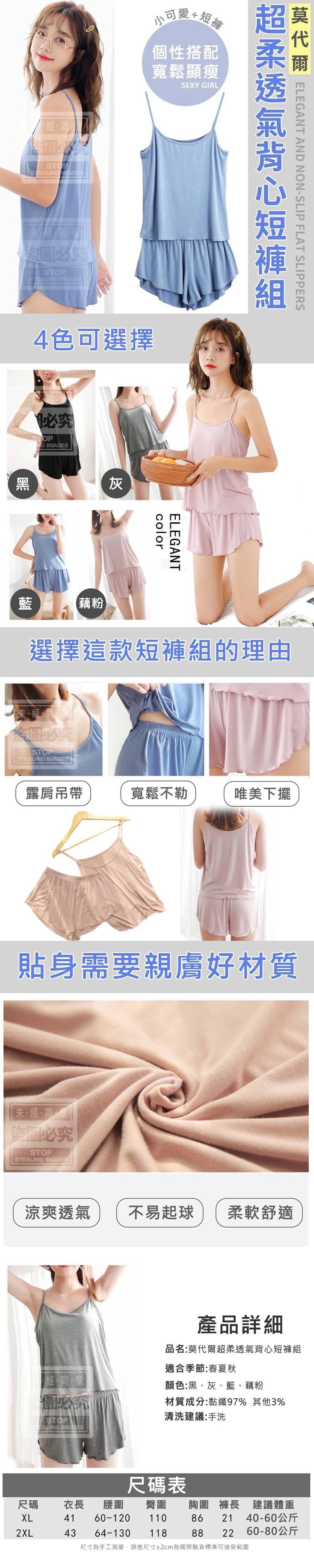 顏色-黑、灰、藍、藕粉 【商品尺寸】- XL、2XL (尺寸為手工測量, 誤差尺寸±2cm為國際驗貨標準可接受範圍) (附贈配件款式數量及顏色隨機出貨, 圖片僅供參考,以實際收到為主。) 【商品說明】- 個性搭配、寬鬆顯瘦 性感女孩居家穿著就是要舒服! 小可愛+短褲採用親膚好材質 涼爽透氣、不易起球、柔軟好舒服~ 露肩吊帶展露小女人味 寬鬆不勒小肚肚 唯美下擺飄飄動人 共四色可選喔!