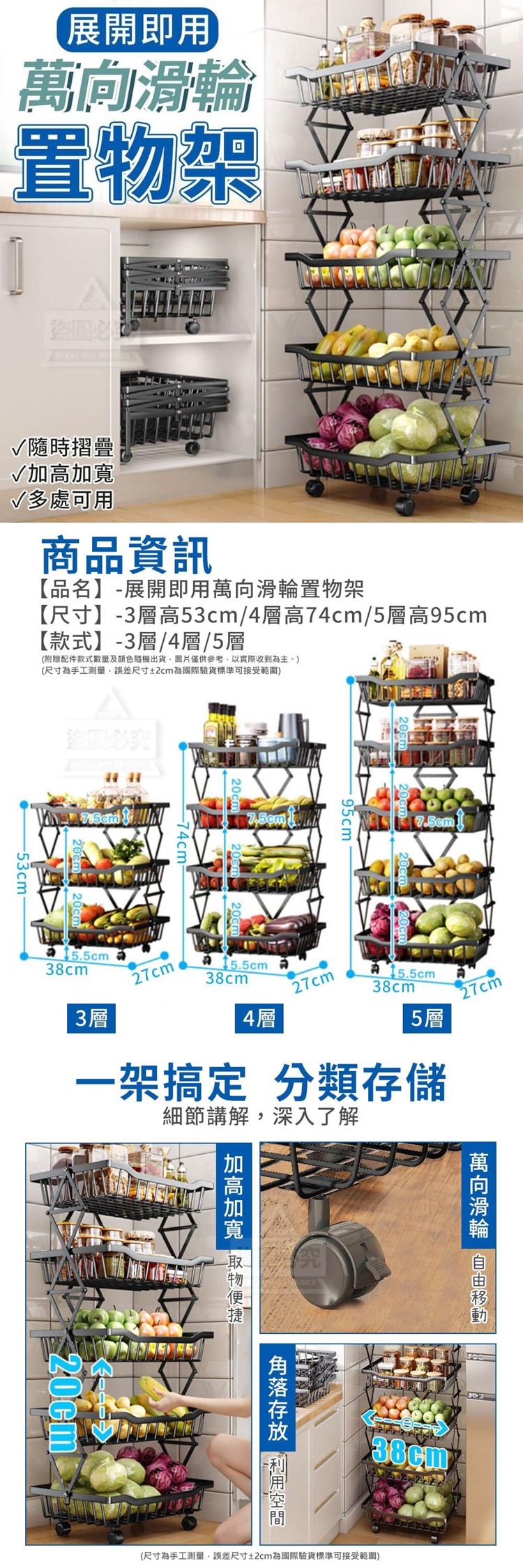 【商品尺寸】-3層高53cm/4層高74cm/5層高95cm【商品顏色】-3層/4層/5層(尺寸為手工測量,誤差尺寸±2cm為國際驗貨標準可接受範圍)(附贈配件款式數量及顏色隨機出貨,圖片僅供參考,以實際收到為主。)【商品說明】-