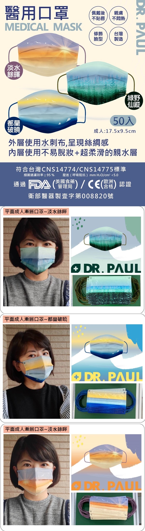 Dr. PAUL天祿美景伴隨成人款醫用口罩50入/淡水餘暉