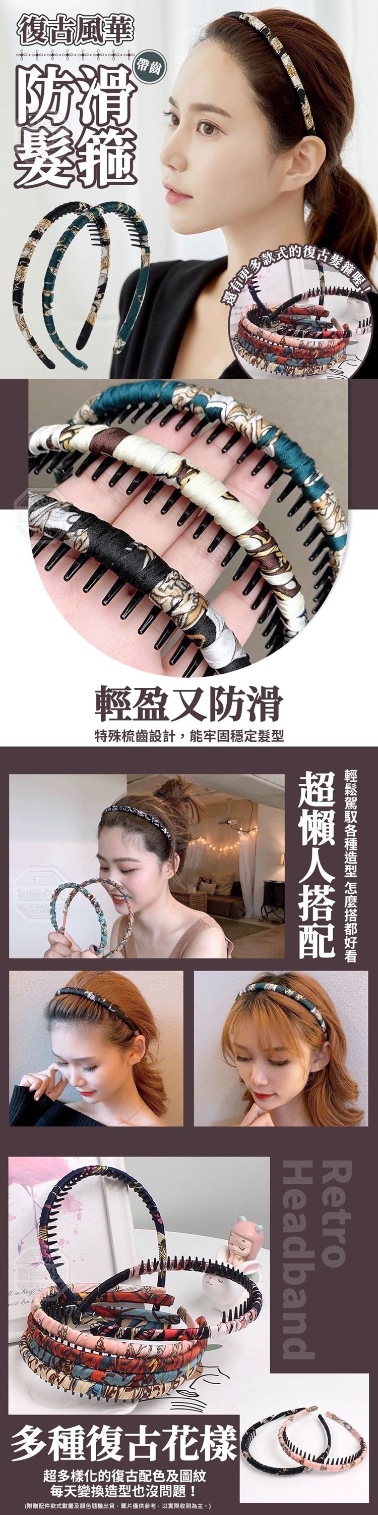 【商品尺寸】-12.5cm 【商品材質】-壓克力 【商品顏色】-多樣款式 (附贈配件款式數量及顏色隨機出貨, 圖片僅供參考,以實際收到為主。) 【商品說明】- 復古從不褪流行~ 喜歡復古造型的你絕對不能錯過的搭配小物 輕盈又防滑 特殊梳齒設計,能牢固穩定髮型 輕鬆一戴就很好看! 髮箍耐用不易斷 精選優良材質,耐戴又好搭配! 多種復古花樣 超多樣化的復古配色及圖紋, 每天變換造型也沒問題! 超懶人搭配,輕鬆駕馭各種造型 髮箍一戴上,穿搭超加分!