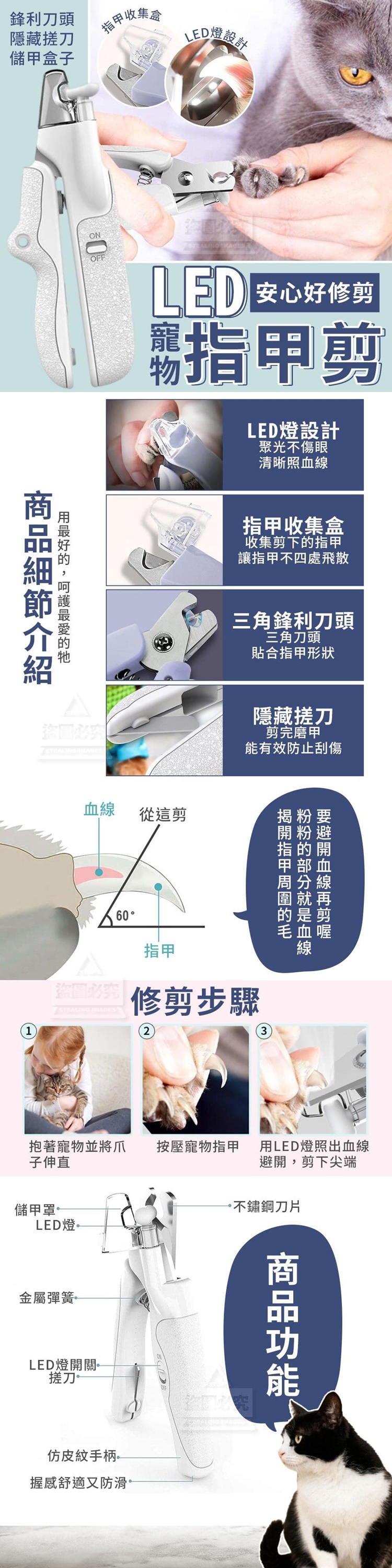 LED安心好修剪寵物指甲剪