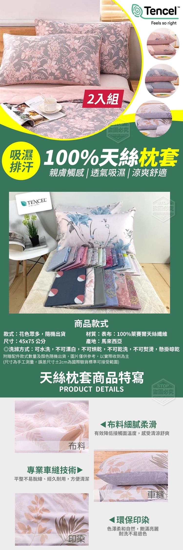 吸濕排汗100%天絲枕套(2入組)