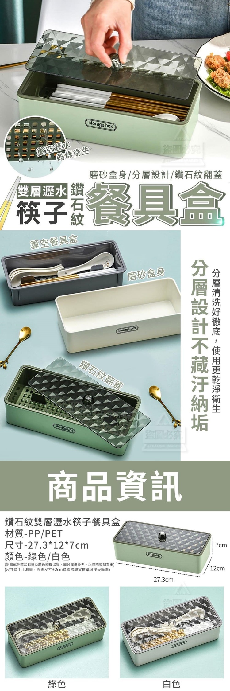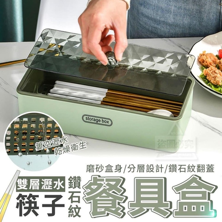 鑽石紋雙層瀝水筷子餐具盒