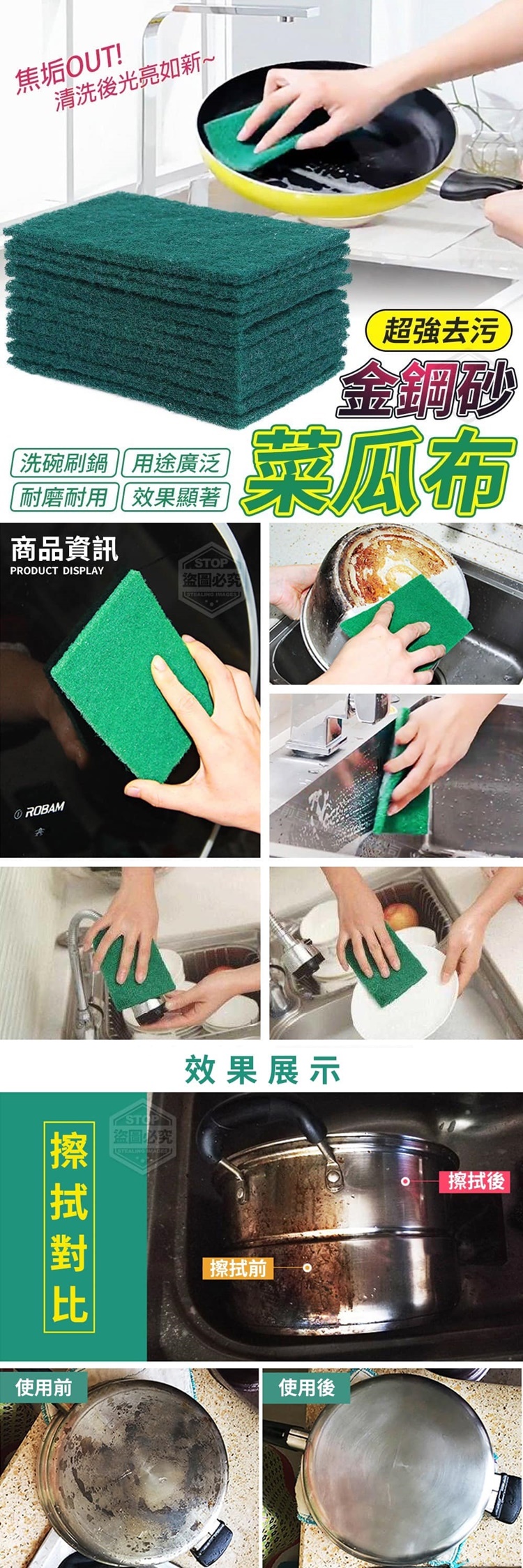 【商品說明】- 免費力清潔法寶! 頑固的焦垢也能輕鬆刷~ 用過就回不去了~~~ 信不信由你用了就知道 含砂款的菜瓜布內含研磨粒子 可刷鍋、也可以洗碗,摩擦力強 去污清潔度高耐磨耐用,效果顯著 滿足多種需求,不傷手易清洗 摩擦力大,耐磨去汙力強 適合清除頑固污漬 給您有效率的清潔體驗~ ●洗碗刷鍋 ●用途廣泛 ●耐磨耐用 ●效果顯著
