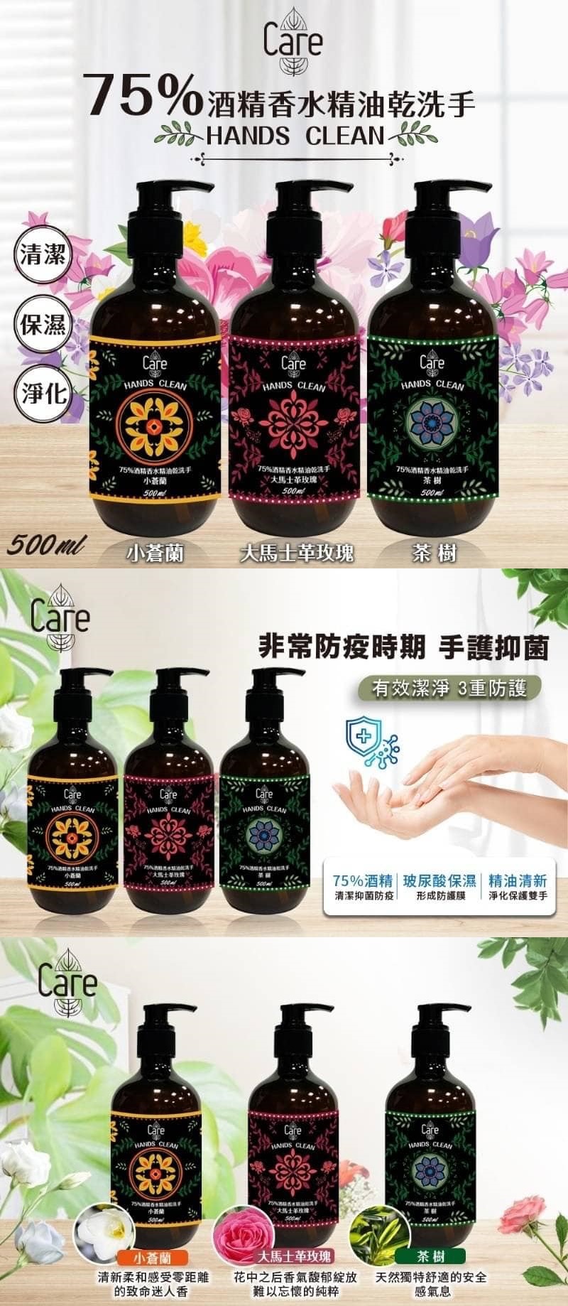 小蒼蘭/茶樹/大馬士革玫瑰 非常防疫時期 手護抑菌 有效潔淨 3重防護 75%酒精清潔抑菌防疫 玻尿酸保濕成份 形成防護膜 精油清新淨化保護雙手 各種病毒 讓生活造成極大威脅 需要你我一起 隨時清潔雙手 無時無刻安心防護 小蒼蘭:清新柔和感受零距離的致命迷人香。 茶樹:天然獨特舒適的安全感氣息。 大馬士革玫瑰:花中之后香氣馥郁 綻放難以忘懷的純粹。