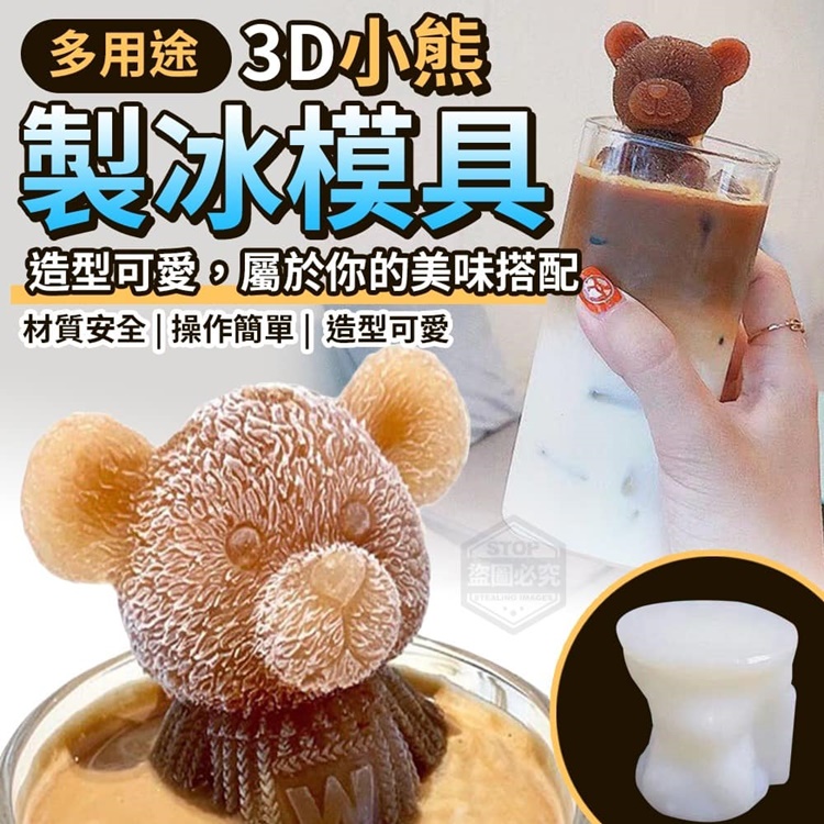 【商品尺寸】模具:55x50x40mm (尺寸為手工測量, 誤差尺寸±20mm為國際驗貨標準可接受範圍) 【商品重量】75g 【商品說明】- 爆紅款!多用途3D小熊製冰模具 造型超可愛,萌動你的心! 一體設計不漏水,柔軟好脫模 輕鬆創造屬於你的美味搭配! 拉伸不易變形 韌性強,拉扯不易變形,使用更長久 輕輕一拉 順滑脫模 良好的彈性和順滑的表面, 輕輕一拉就能脫模 一模多用 居家料理、餐飲行業的好幫手 易上手操作簡單 簡單幾步,輕鬆製冰 影片僅供參考使用方式 所有配件以實際收到為主