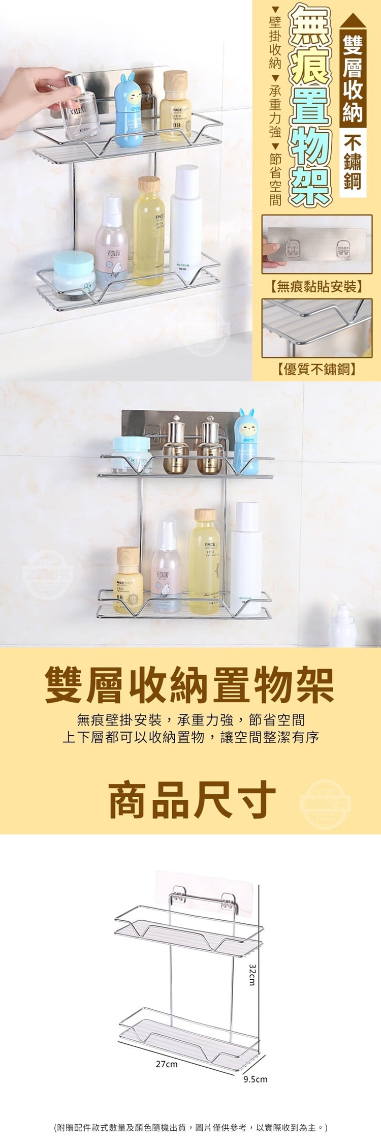 雙層收納不鏽鋼無痕置物架