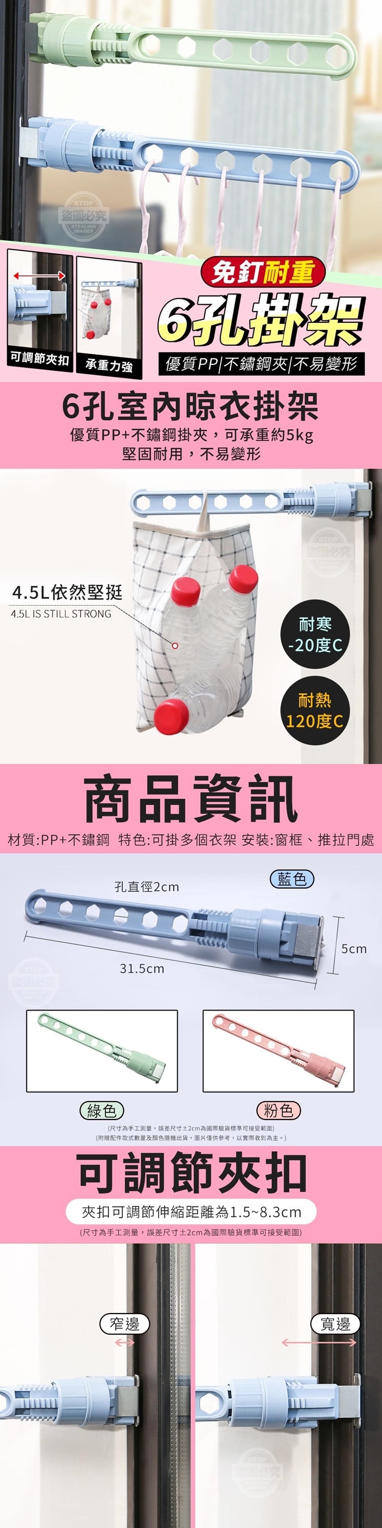 免釘可調節夾扣耐重6孔掛架