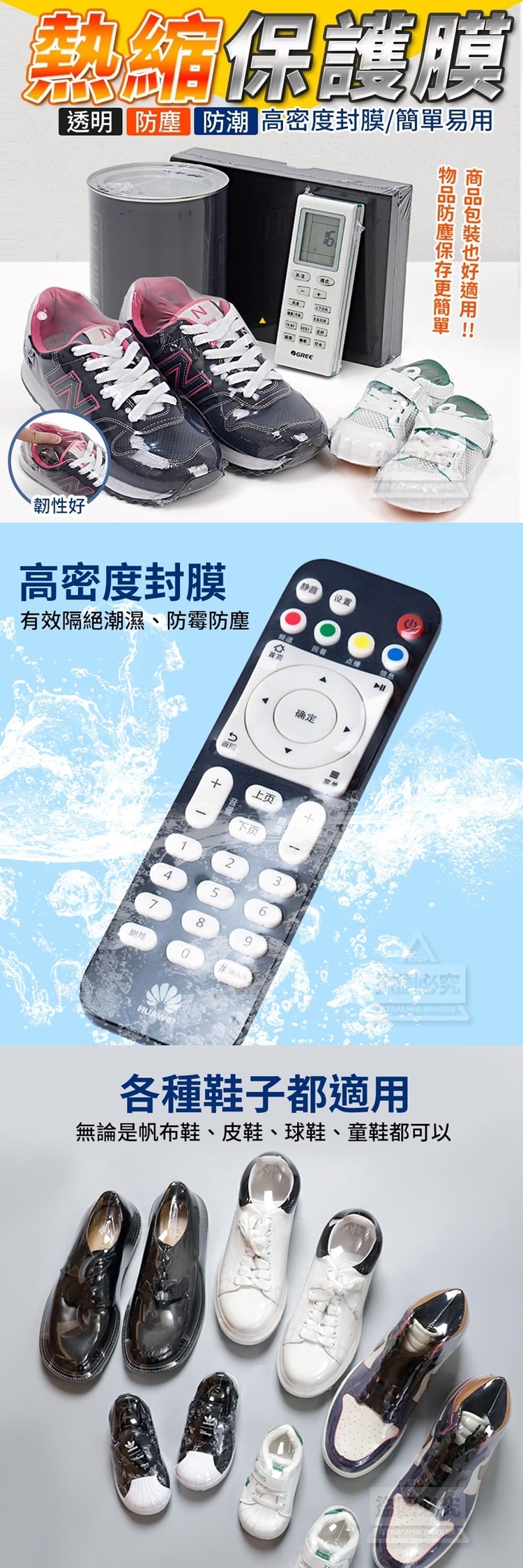 尺寸28x45cm 材質 pvc 【商品說明】- 物品潮濕發霉、氧化發黃怎麼辦!? 透明防塵防潮熱縮保護膜 解決物品發霉氧化的難題!! 保護膜隔絕外部汙染、保護您愛用品! 簡單易用 簡單好操作,吹風機熱風配上"它" 就能輕鬆封膜超方便!!! 一步到位好貼心 透明度好/易收縮/韌性好,可以保存更長久 一膜多用途 封膜鞋子、遙控器、盒子等等都適用 高密度封膜 有效隔絕潮濕、防霉防塵 守護您心愛的物品, 就交給熱縮保護膜吧!!! 影片僅供參考使用方式 所有配件以實際收到為主