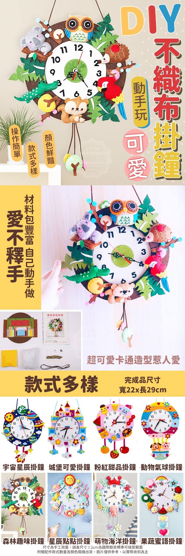 超可愛的不織布掛鐘