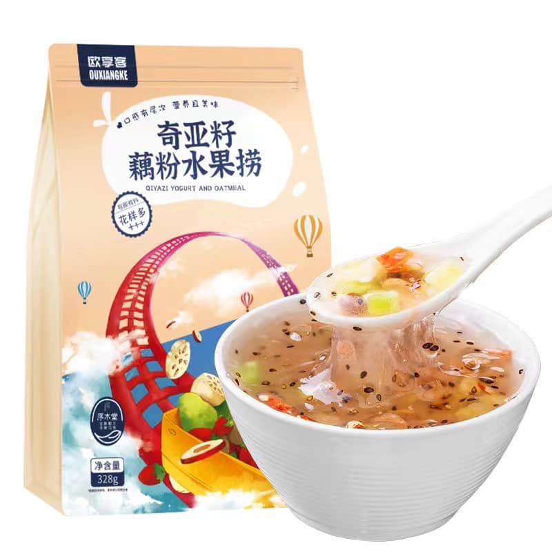 限量奇亞籽藕粉水果撈(袋裝) 享受健康生活,從這杯藕粉開始 3分鐘快速沖泡,五種口味素食者皆可食用 原罐裝全台賣翻了,狂享熱烈好評~~~~~~ 今天廠商給我們獨家袋裝限量3000袋售完不再有 素食可食 營養早餐來一杯 輕鬆下午茶來一杯 宵夜伴侶來一杯 隨時隨地沖泡一杯藕粉讓每一口滿足點燃您的動力守護您的健康 0脂肪,低熱糖飽腹感特別強哦 容量:328克 效期180天