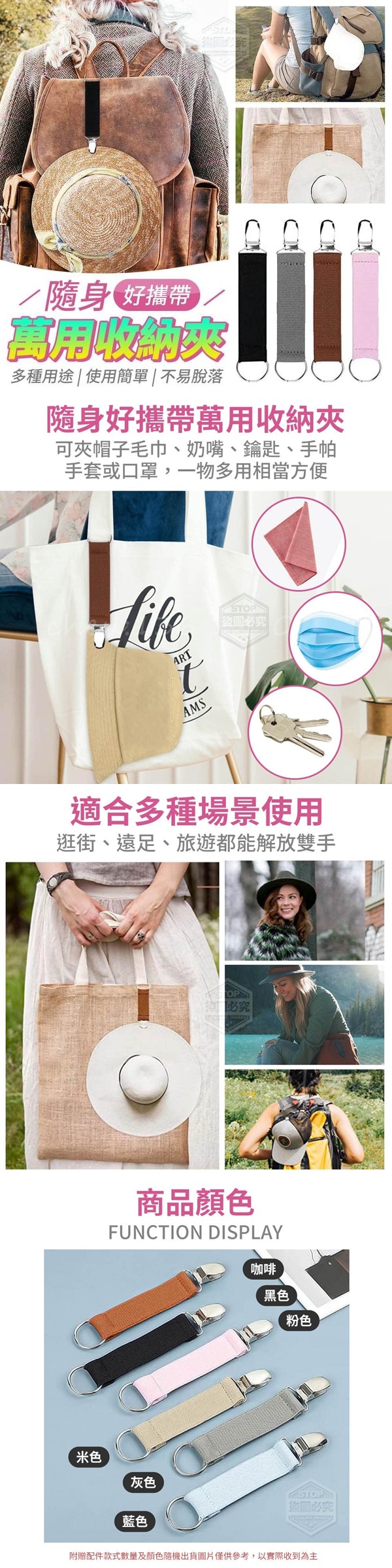 專為追求高效率的現代人量身打造用於連接包包和帽子的收納夾!還可夾毛巾、奶嘴、鑰匙、手帕、手套或口罩等一物多用相當方便喔