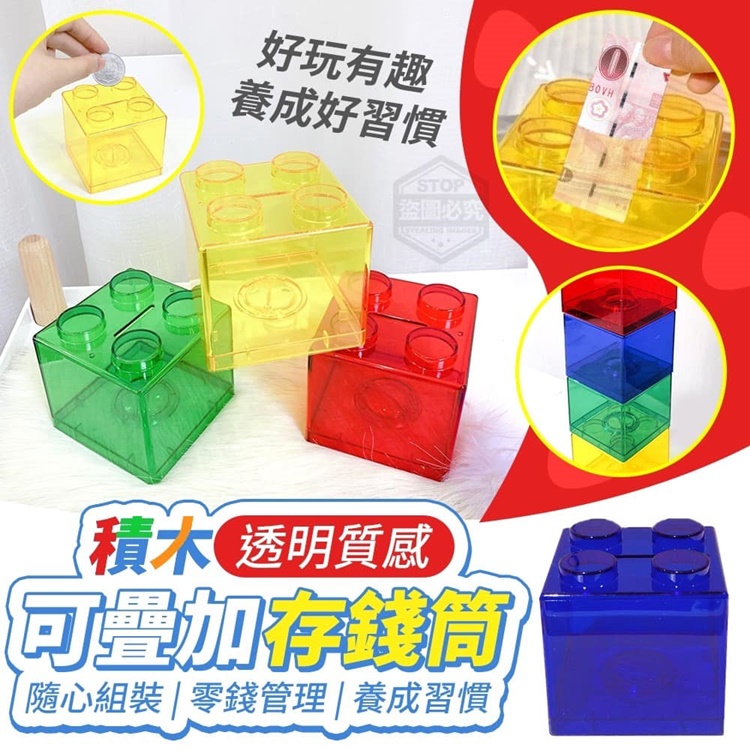 Q 積木透明質感可疊加存錢筒