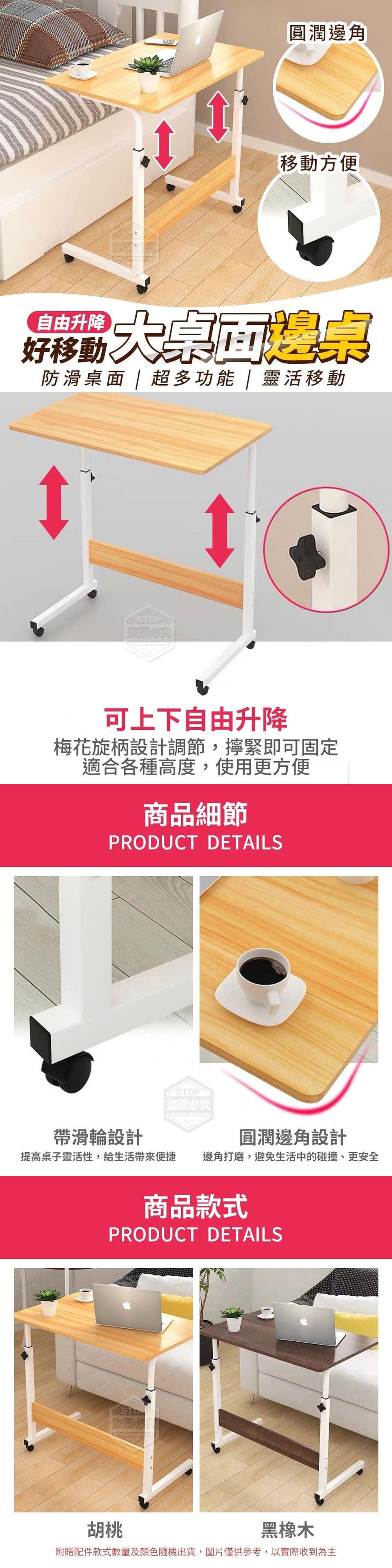 A 自由升降好移動大桌面邊桌