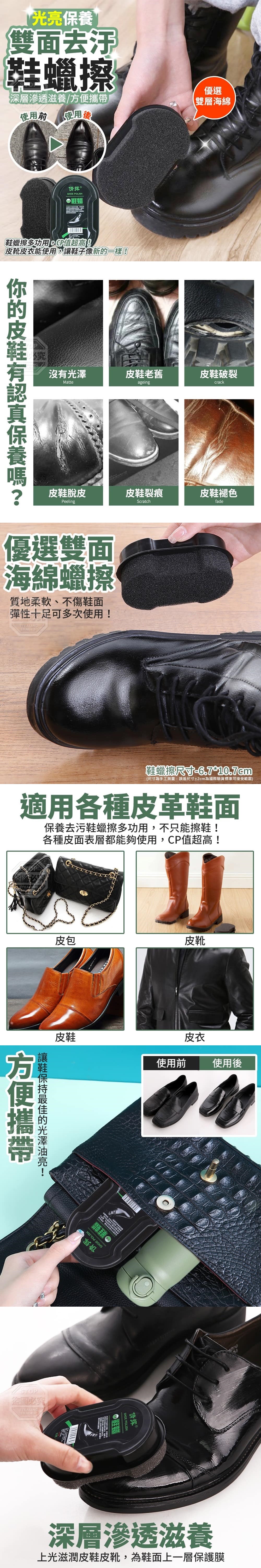 【商品材質】-PP【商品尺寸】-6.7*10.7cm(尺寸為手工測量,誤差尺寸±2cm為國際驗貨標準可接受範圍)【商品說明】-秋冬即將來臨!上班外出必備的各種皮鞋、皮靴!天天穿也要像新的一樣!維持光澤質感,就靠"光亮保養去污雙面鞋蠟擦"優選雙層海綿質地柔軟、不傷鞋面,彈性十足可多次使用!深層滲透滋養上光滋潤皮鞋皮靴,為鞋面上一層保護膜防霉防潮,柔軟爽滑!適各種皮革鞋面鞋蠟擦多功用,不只能擦鞋!各種皮面表層都能夠使用,CP值超高!方便攜帶趁工作休息空檔就能使用,讓鞋保持最佳的光澤油亮!日常穿搭質感,就是從小細節做起!秋冬穿皮靴也能很時髦,讓你隨時成為注目焦點!有效期3年影片僅供參考使用方式所有配件以實際收到為主