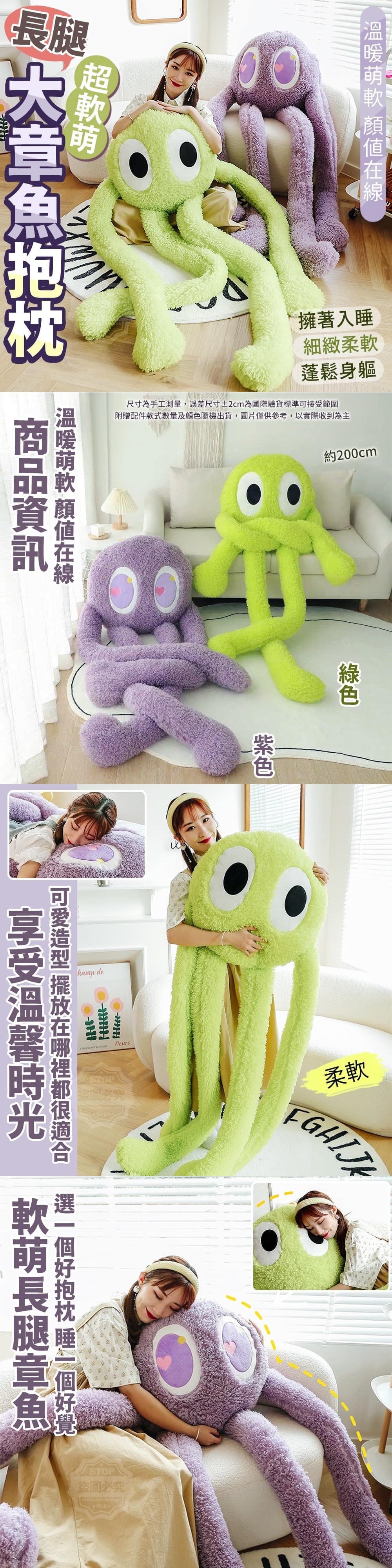 【商品材質】-短毛絨、填充棉【商品尺寸】-約200cm(尺寸為手工測量,誤差尺寸±2cm為國際驗貨標準可接受範圍)【商品顏色】-綠色 / 紫色附贈配件款式數量及顏色隨機出貨,圖片僅供參考,以實際收到為主【商品說明】-一般的抱枕都太小了不好抱嗎?軟萌長腿章魚 看著他的表情絕對會忍不住要帶他回家選一個好抱枕 睡一個好覺!!享受溫馨時光 一款打動你新的抱枕無論是用擁著入睡、抱著看電視電腦時當靠枕,都是你最佳好夥伴活性印染 細緻柔軟 蓬鬆身軀溫暖萌軟 顏值在線柔軟 抱著好舒服~pp棉填充細膩加倍