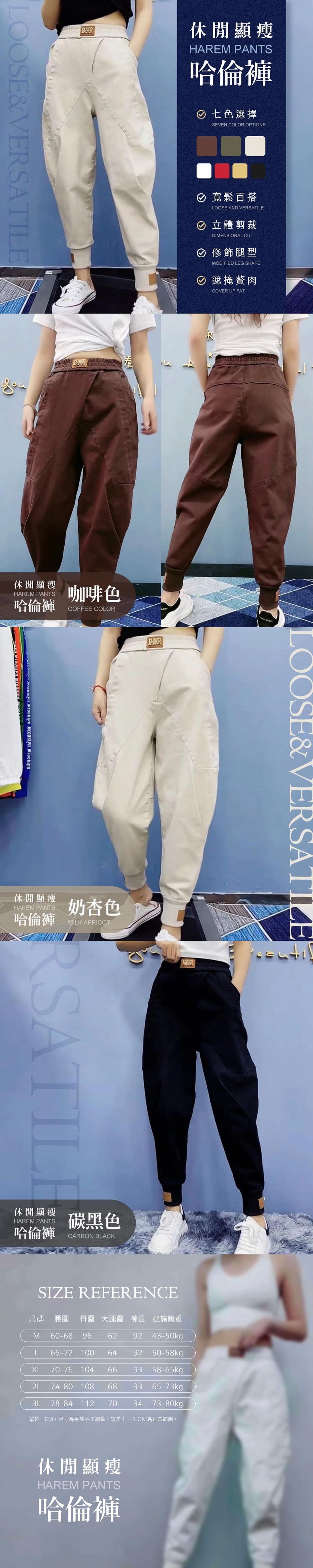顏色:杏色/咖啡色/黑色/白色(遇缺隨機)尺寸:M / L / XL /2XL / 3XL每次出門都超多人在穿寬鬆百搭,腿粗穿了變纖細水水們還不趕快來一件