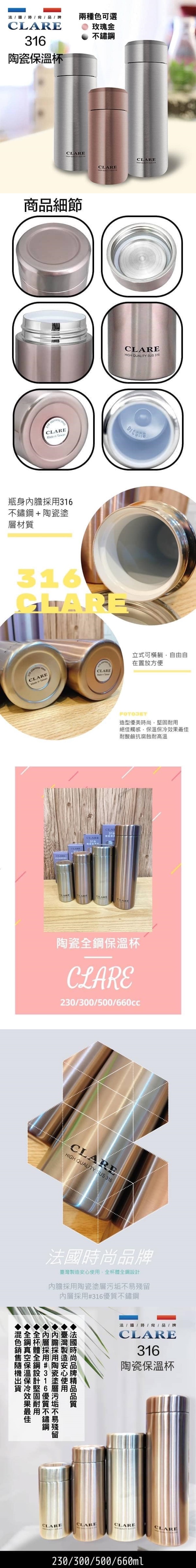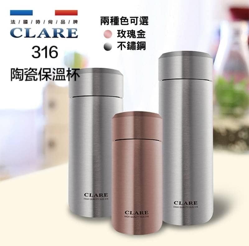 法國品牌CLARE 316陶瓷全鋼保溫杯
