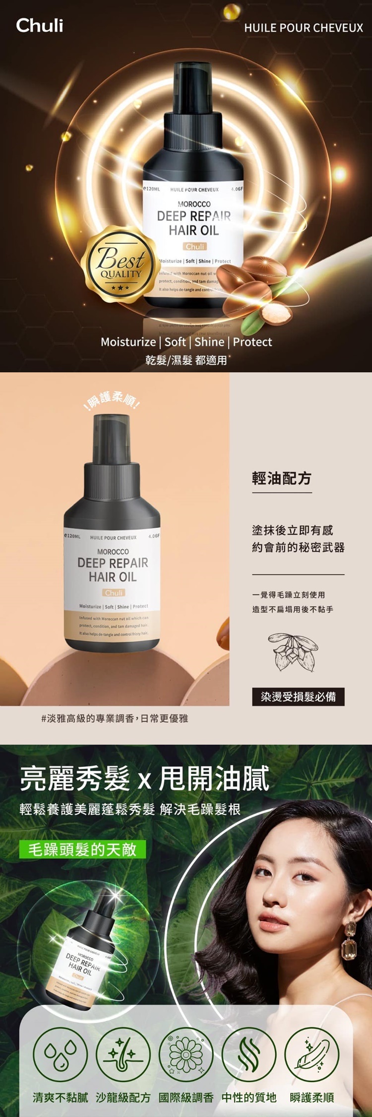 初梨摩洛哥深層修護髮油,養護成分不打折,更調整成適合我們髮質特色的產品,中性的質地,清爽的手感,國際級調香的百搭香氛,更適合一般日常使用。沙龍級配方,瞬護柔順,染燙受損髮必備