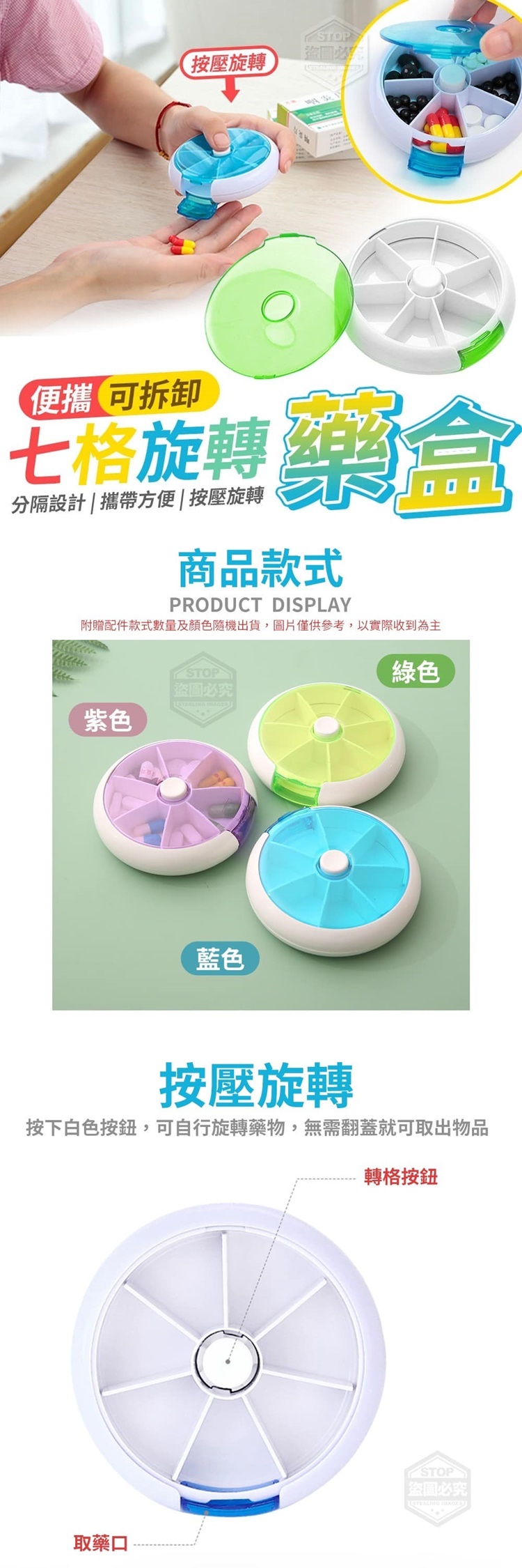 便攜可拆卸七格旋轉藥盒
