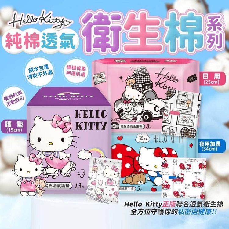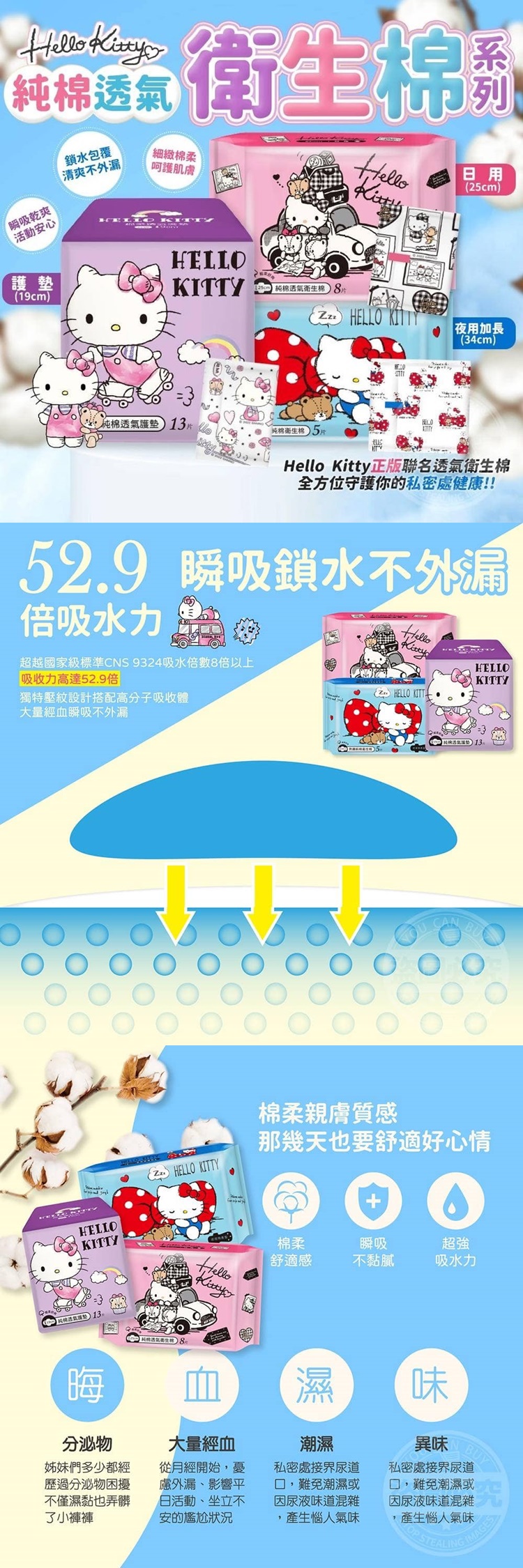 可愛Hello Kitty系列聯名純棉透氣衛生棉~