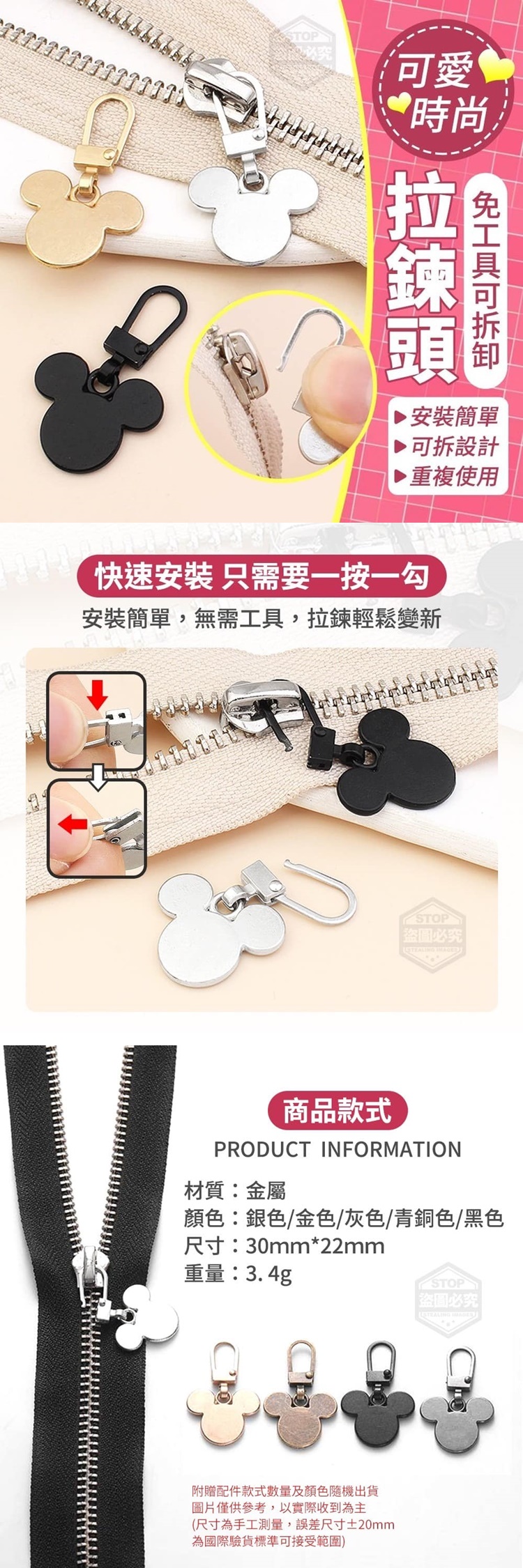可愛時尚免工具可拆卸拉鍊頭