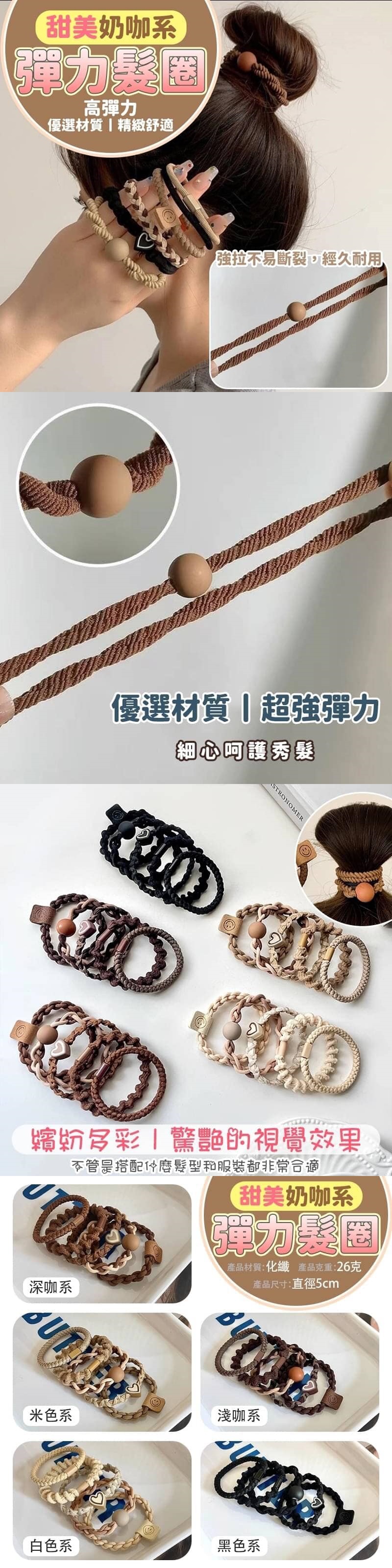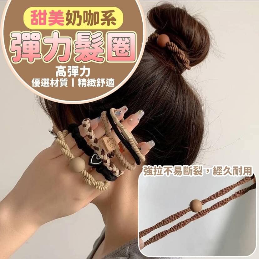 甜美奶咖系彈力髮圈,高彈力,強拉不易斷裂,經久耐用優選材質,精緻舒適,細心呵護秀髮細膩的工藝,色彩的搭配,驚艷的視覺效果不管是搭配什麼髮型和服裝都非常合適商品規格