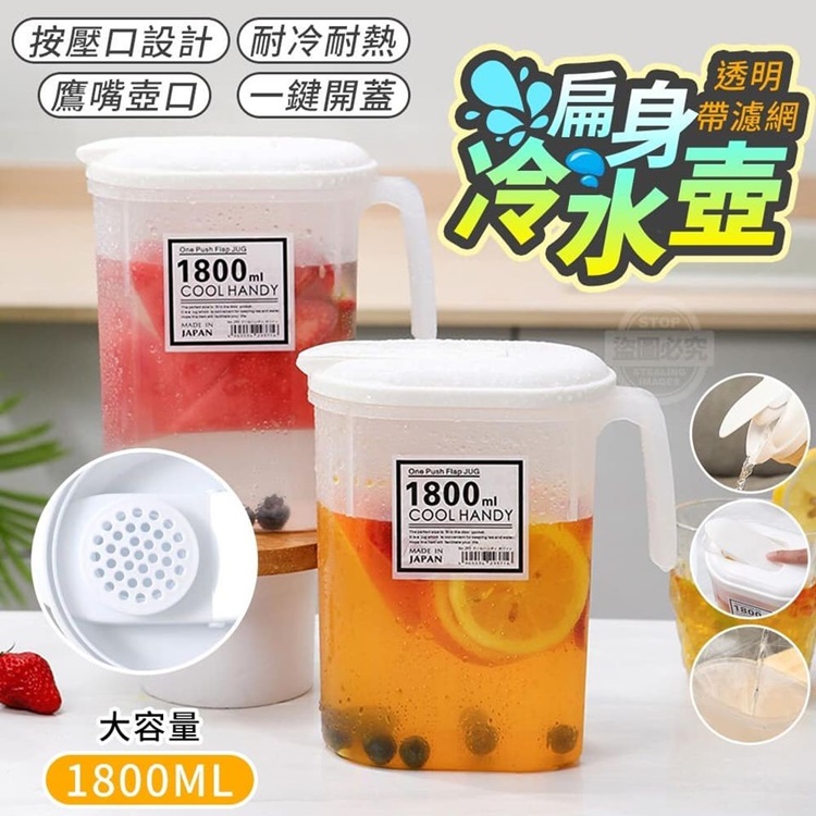 帶濾網扁身冷水壺超好用