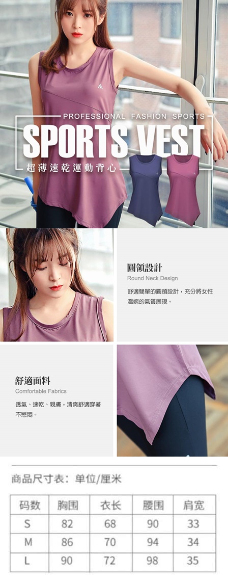 顏色:藍,紫 尺寸:S,M,L 夏天就是要來幾件這種運動背心 寬鬆涼感,舒適好穿 無論怕熱的,不喜歡束縛感的 愛運動的,很會流汗的 都很推薦這件 在運動用品店買 一件貴松松 我們今天開團1件 $190 速乾的舒適感 時尚的設計風 柔軟舒適的彈力面料,具有極佳吸濕性 上健身房運動、做瑜伽、日常穿著都適合! 顯瘦腰身設計,背部顯瘦設計, 簡而收身,隨心運動,輕鬆無壓力。