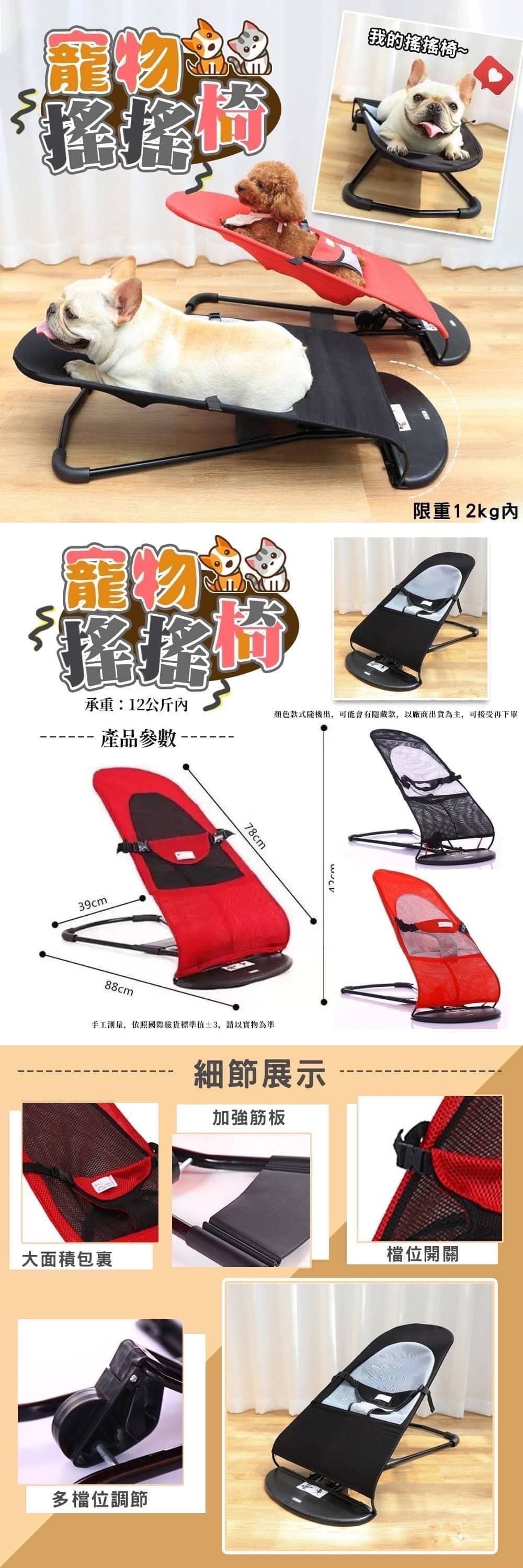寵物搖搖椅 顏色、款式:隨機出 尺寸:如圖 材質:網布面料 給狗狗騰空感的魔法椅 搖去煩惱,解悶無憂 舒適睡眠,夏日神器 內陷式大面積包裹,滿滿安全感 網眼透氣面料,炎熱夏季也能保持乾爽舒適 多檔可調節模式,不一樣的慵懶舒適 安全更舒適,坐躺隨心,鏟屎官的精明之選 自然搖擺,帶來趣味體驗 限重12KG內