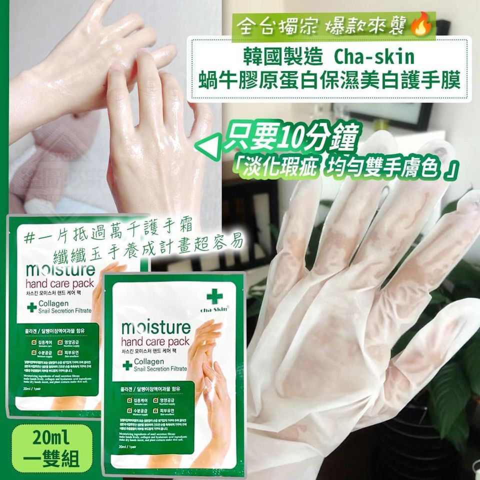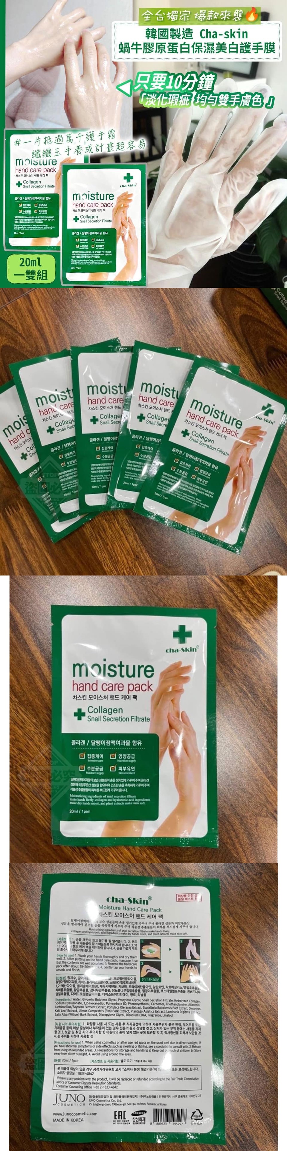 韓國製造 Cha-skin蝸牛膠原蛋白保濕美白護手膜20ml一雙組